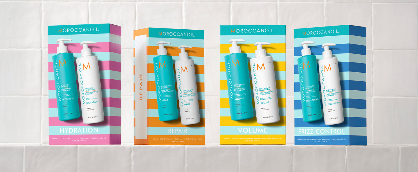 Gør din hårrutine endnu bedre. Hent dine shampoo- og balsamsæt i halvlitersstørrelse.