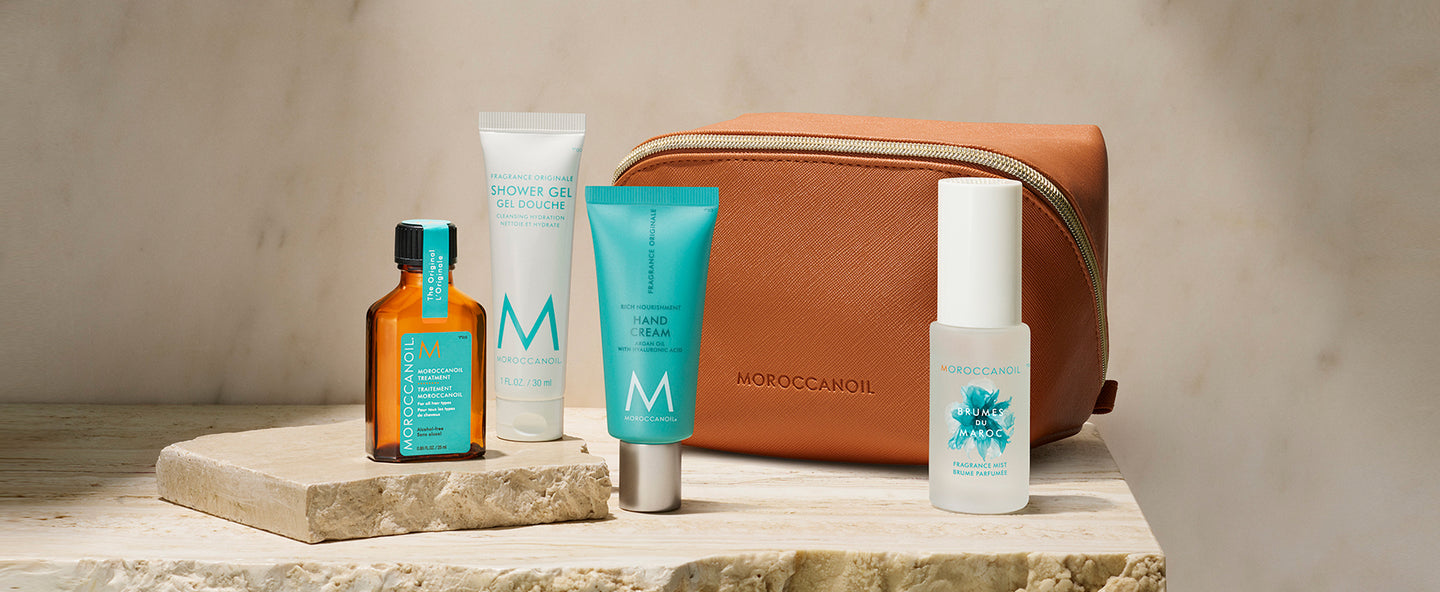 Spar på dine favoritter – eller find nye – med vores hår- og kropsplejesæt med arganolie i fuld størrelse og rejseformat.