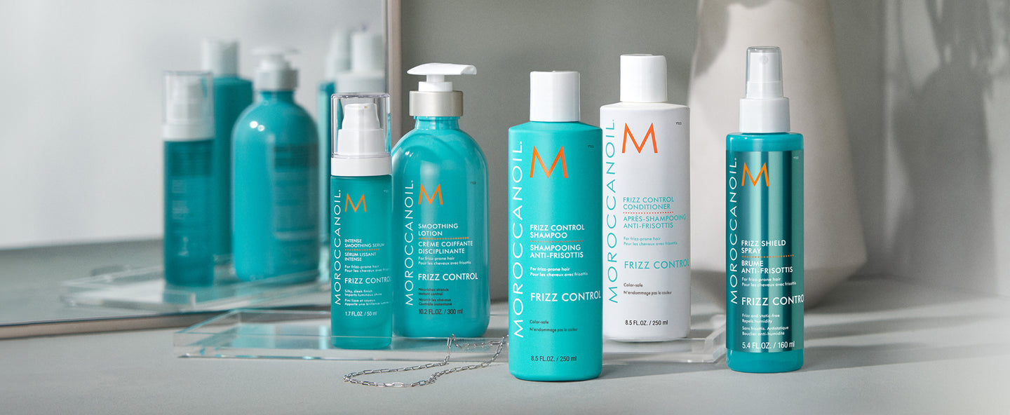 ***Baseret på instrumentel test af effekten af Moroccanoil Frizz Control Shampoo og Frizz Control Conditioner, når de bruges sammen med Moroccanoil Frizz Shield Spray.